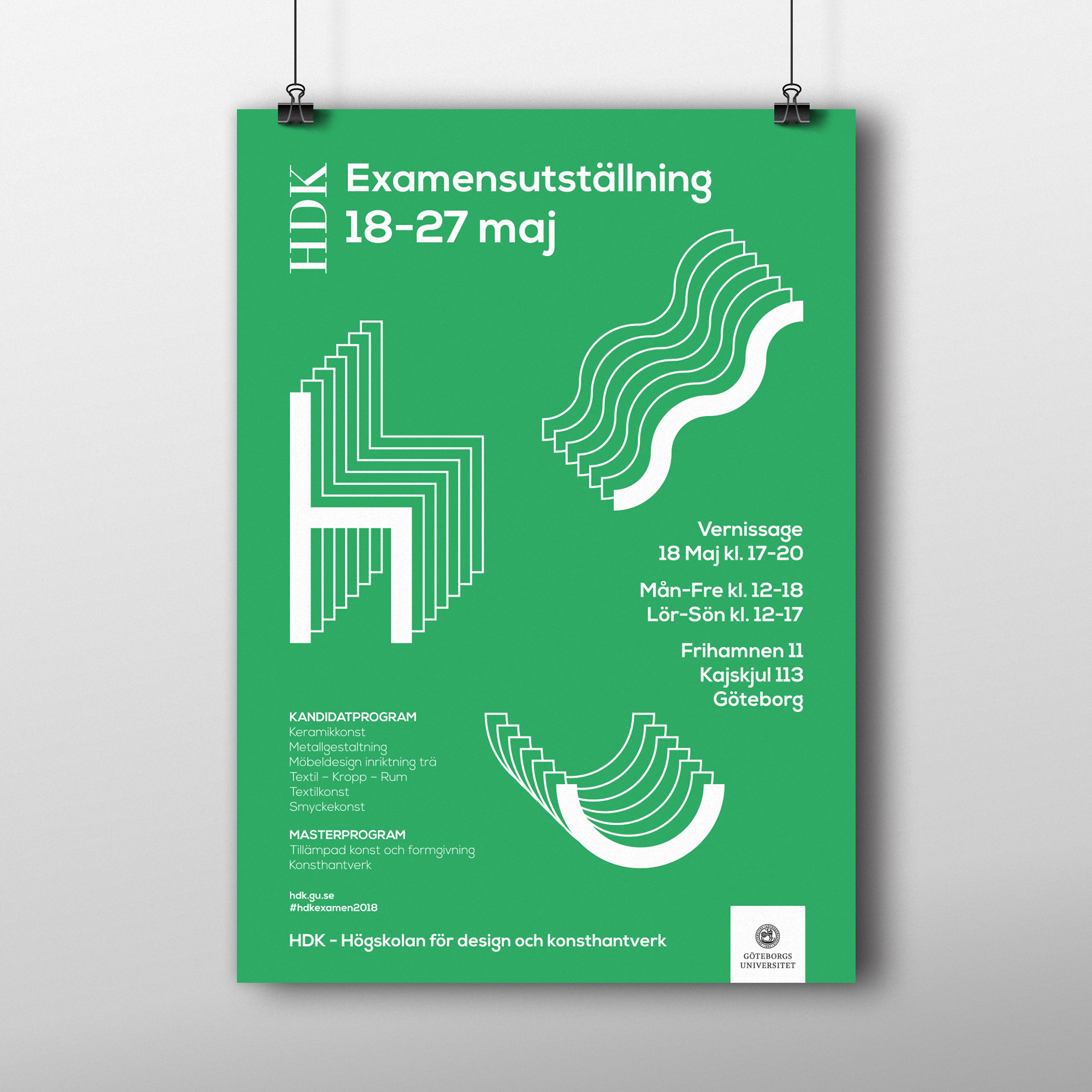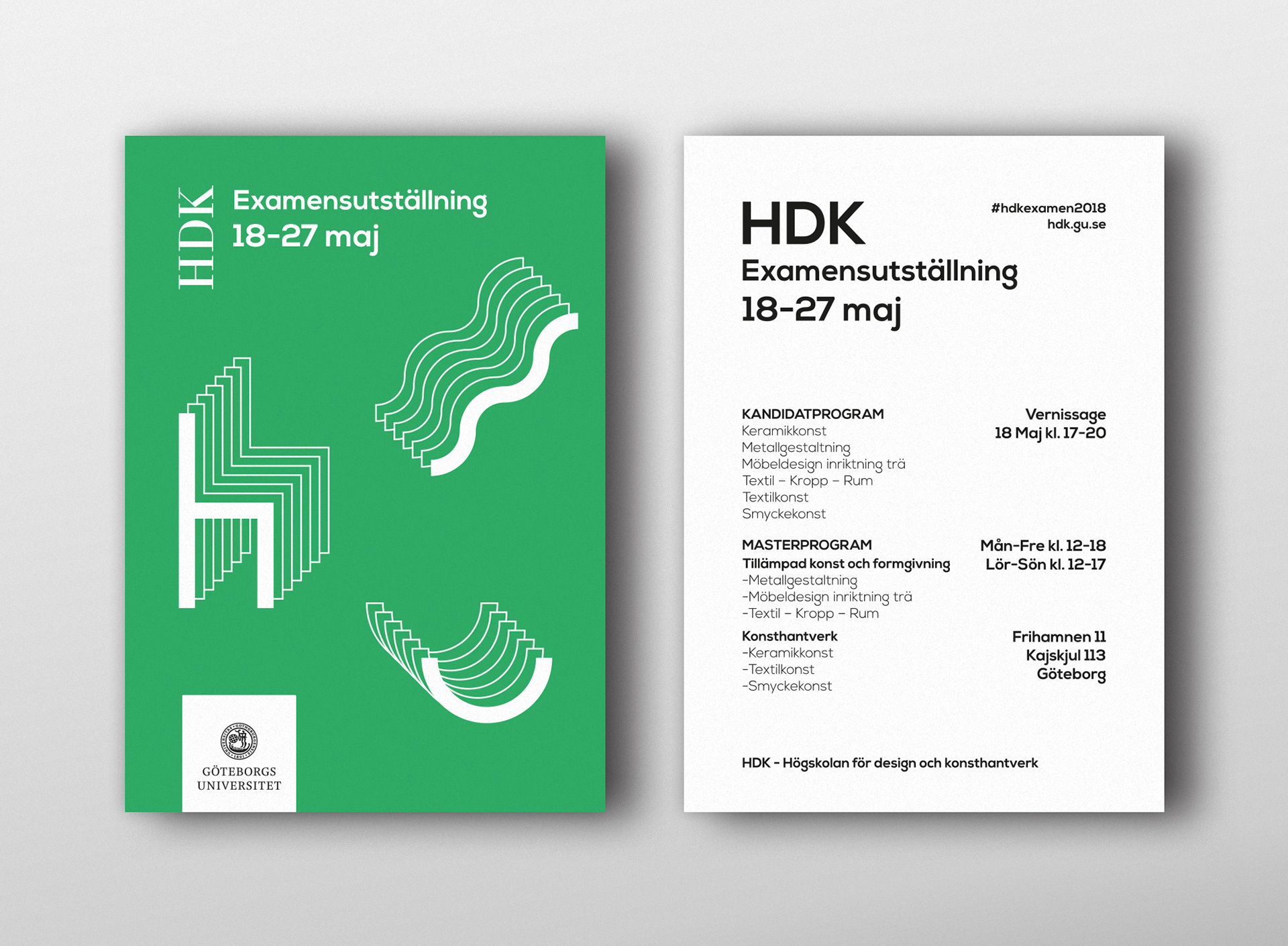 Graphic identity for the 2018 degree exhibition for HDK. Poster, flyer and web content. A collaboration with lowlands.se